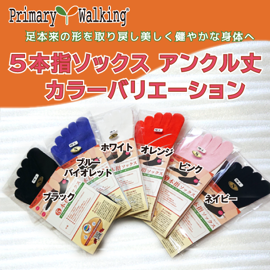 現在、大人気の「プライマリーウォーキング®講座」。プライマリーウォーキング®を身につけるには、講座に参加するのが一番ですが、最も大切な基本である「踵体重®」は、専用に開発された『プライマリーウォーキング®5本指ソックス』を履くだけで誰でも自然と簡単にできるようになります。